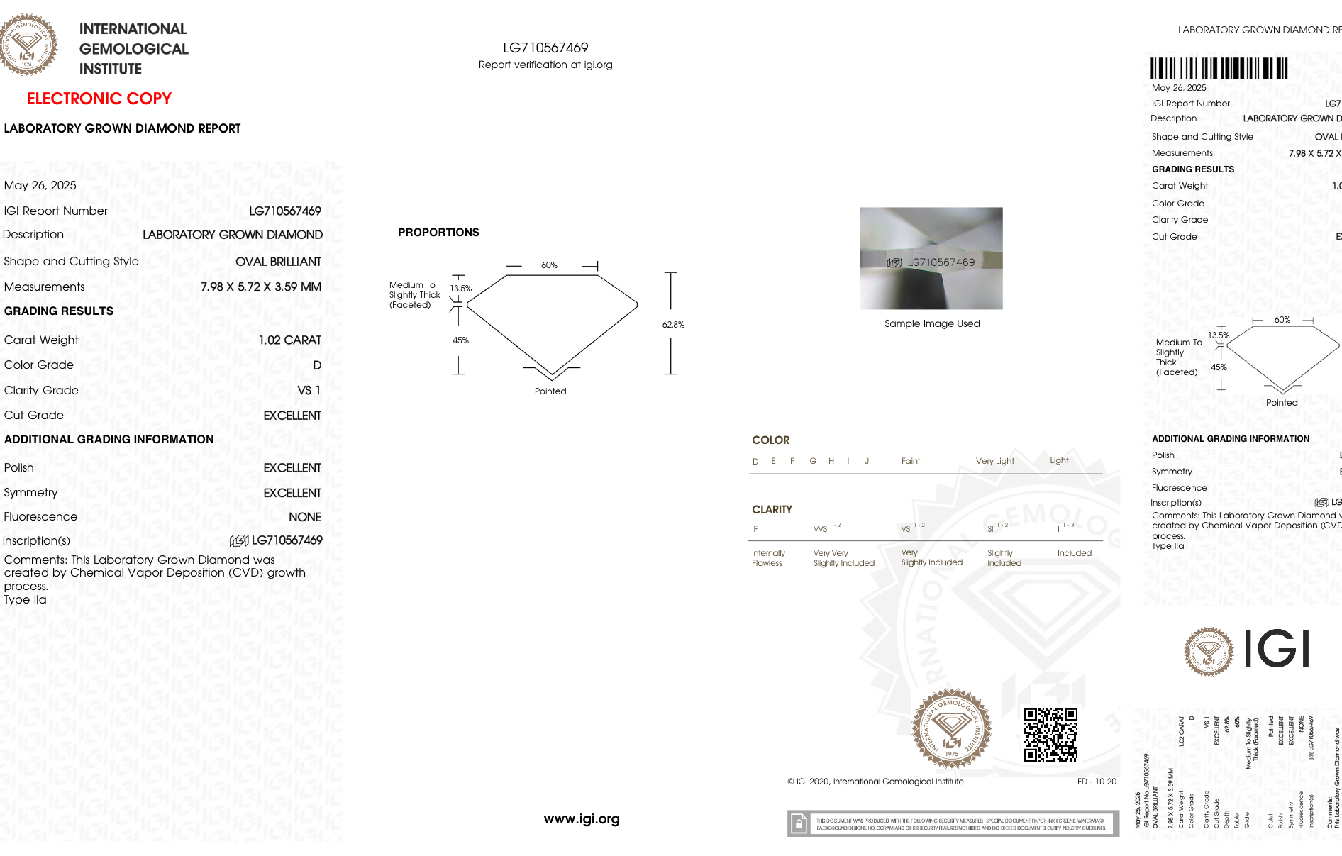14kt Yellow Gold “Classic Accented” Engagement Ring, the Center Diamond is a 1.02 carat IGI certified Lab-Grown Oval-shape Diamond (IGI 710567469), “Excellent” Cut, D Color & VS1 Clarity. The Setting takes 1.50 mm Diamonds going halfway around the Ring, totaling 0.27 carats additional. Finger size 6.